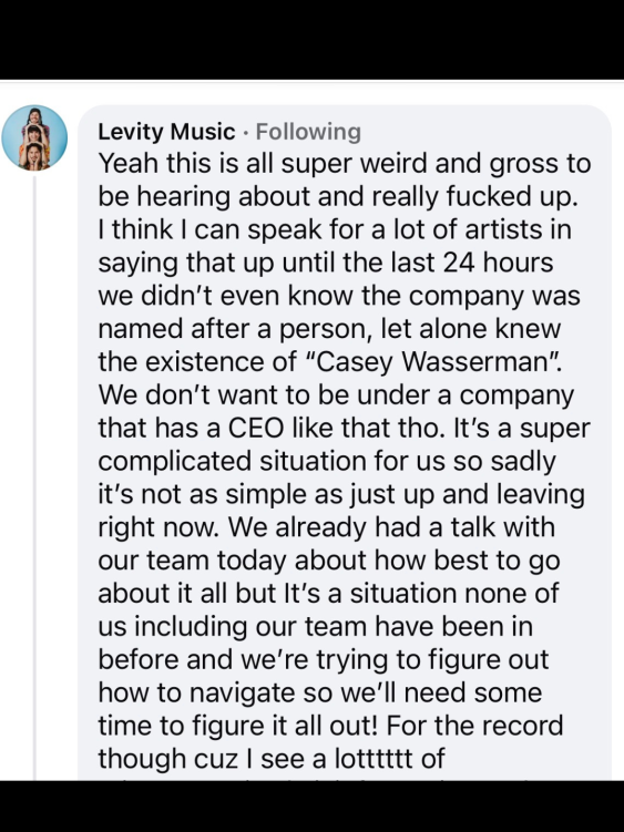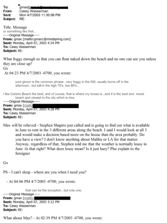 Since that news broke, Wasserman has faced backlash given his presence on convicted sex trafficker Jeffrey Epstein’s plane in 2002 and the release of suggestive emails from 2003 between him and accomplice Ghislaine Maxwell. References to “massages,” “rubbing,” “tight leather flying suits,” and an overarching flirtatious demeanor.