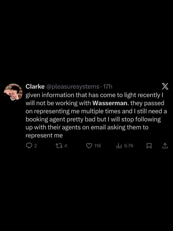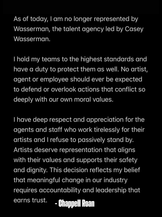 As of the time this was posted, Wasserman has removed their roster from their website in what appears to be an effort to reduce blowback.